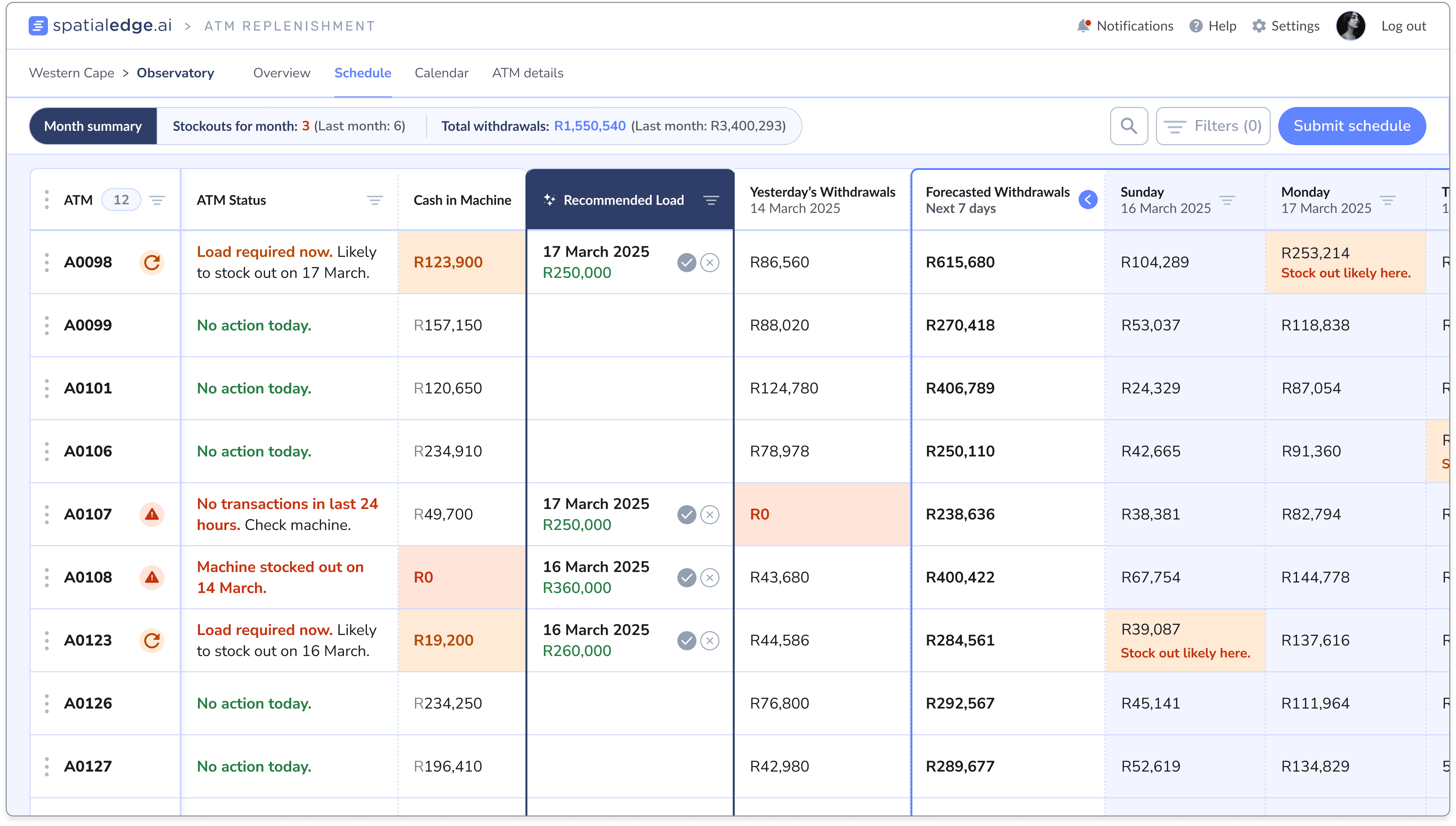ATM Replenishment optimises cash management, ensuring ATMs are efficiently stocked, reducing downtime, and minimising cash-handling costs.