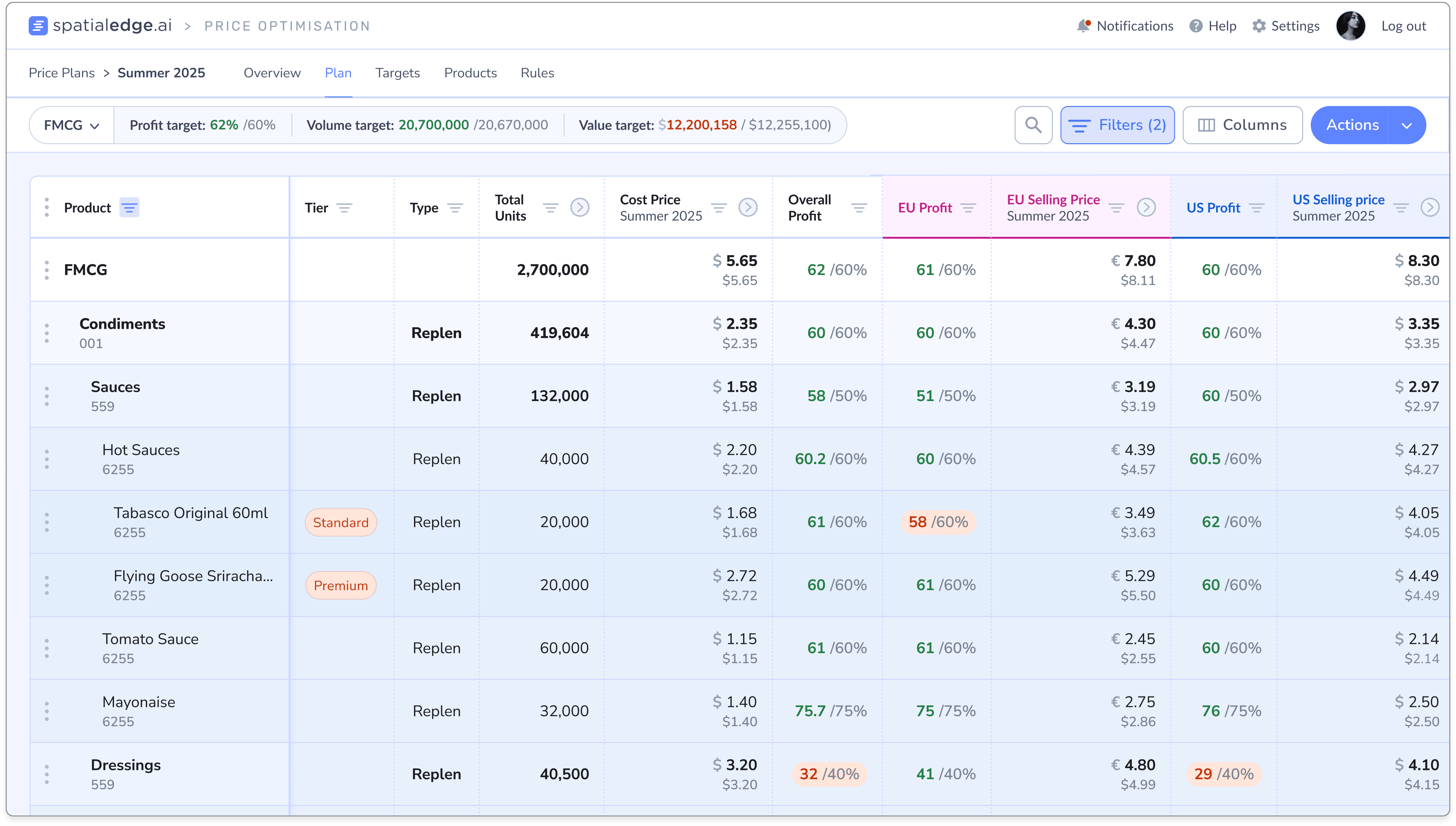Price Optimisation provides data-driven pricing recommendations and scenario planning to help retailers set optimal prices that maximise profitability and achieve strategic business targets.
